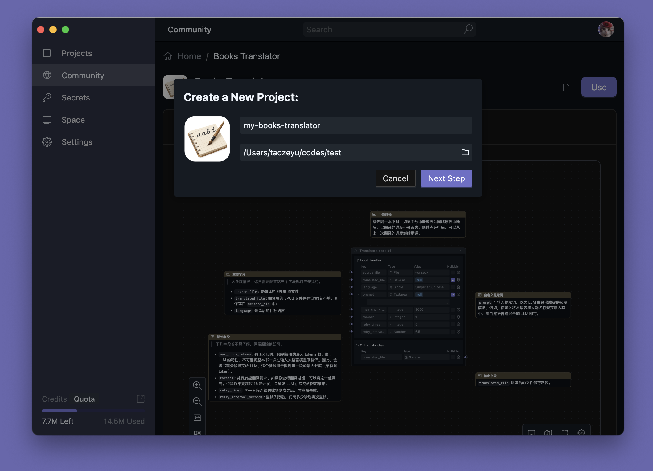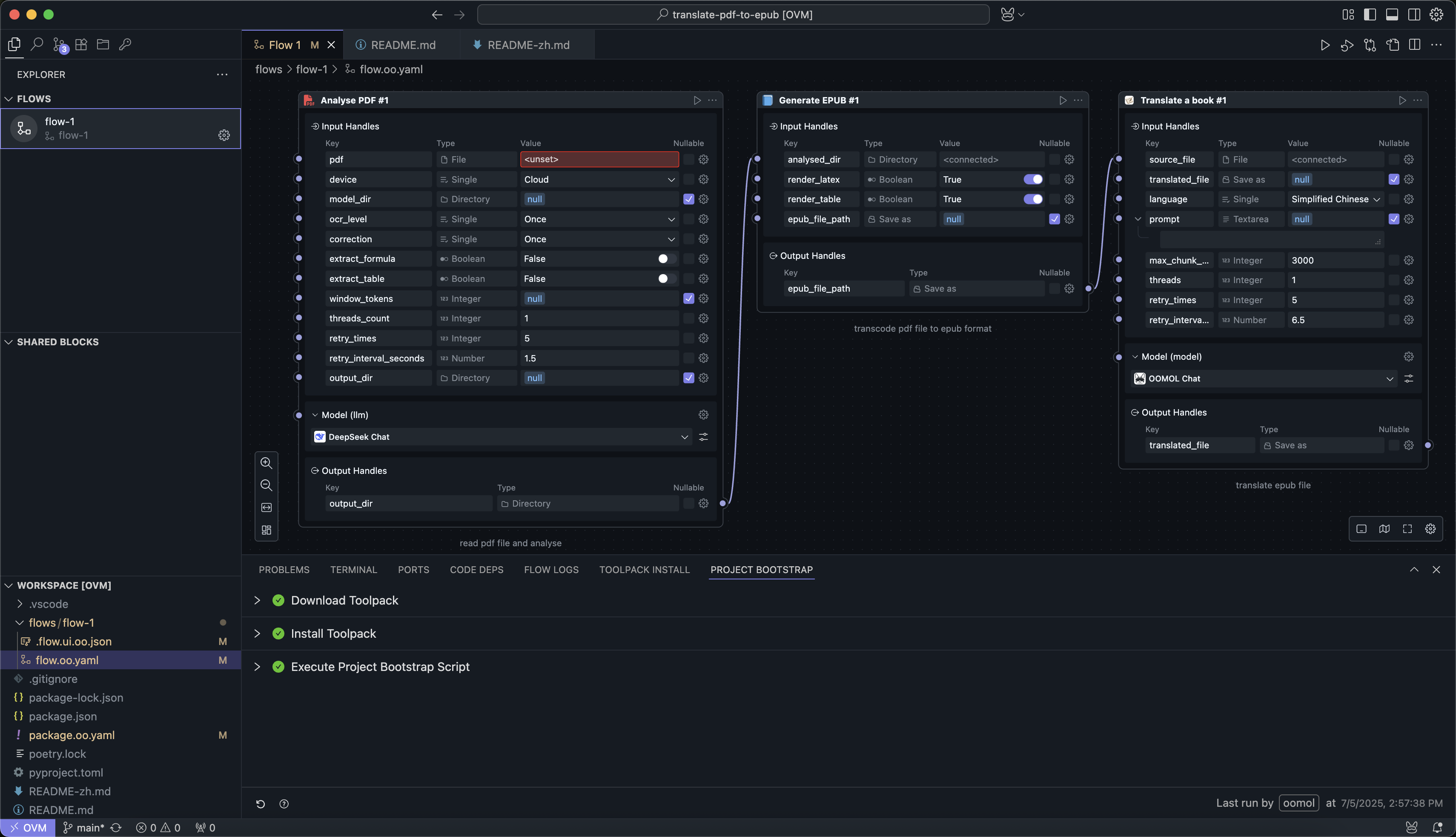 Therefore, OOMOL Studio took this consensus a step further. As a downloadable application, it runs containers with complete code environments locally, enabling the use of complete Node.js and Python community libraries. Complete code support brings workflow development experience and extensibility to the extreme. At the same time, it limits complexity during use through good interaction design, making it easy for ordinary users to get started.
