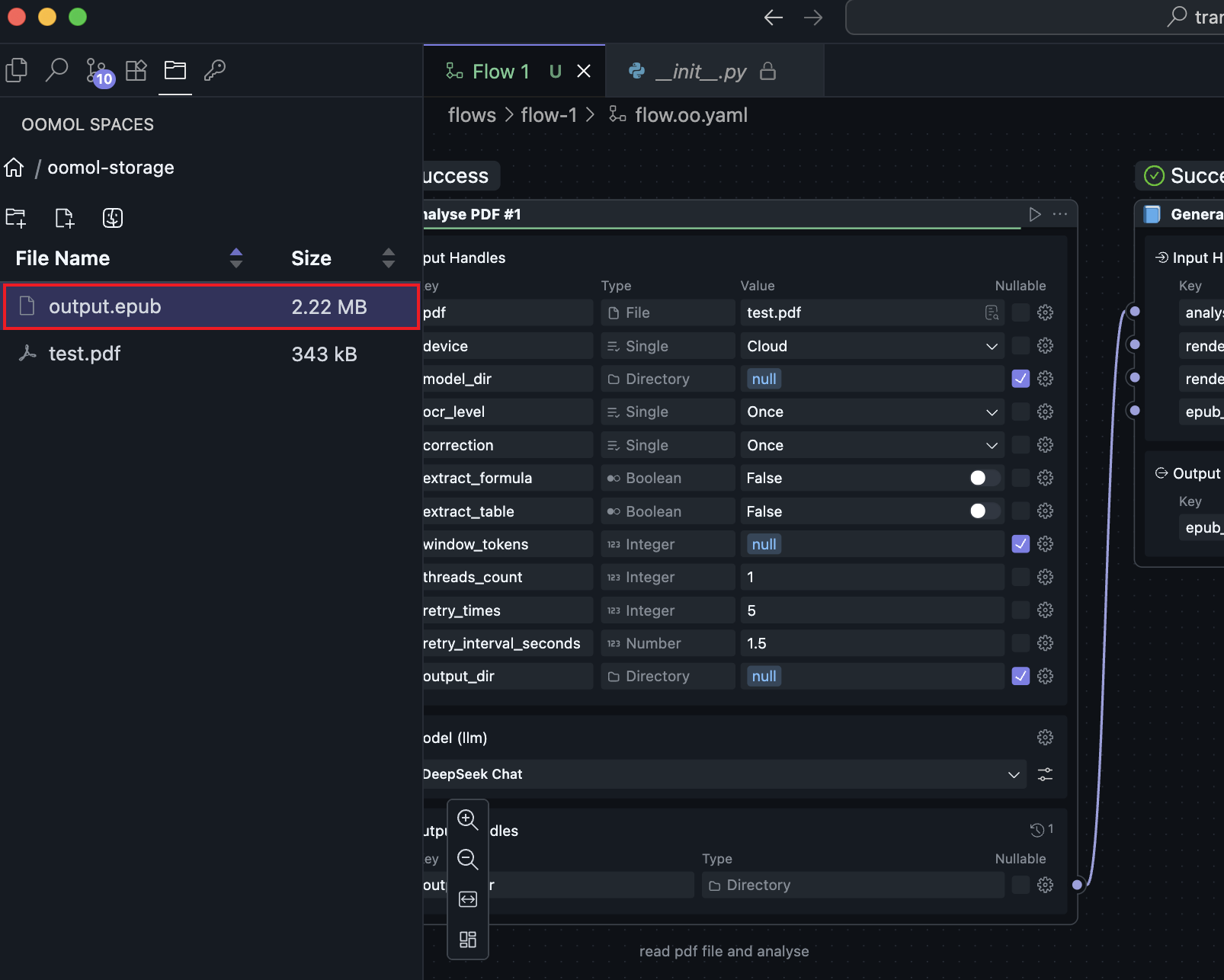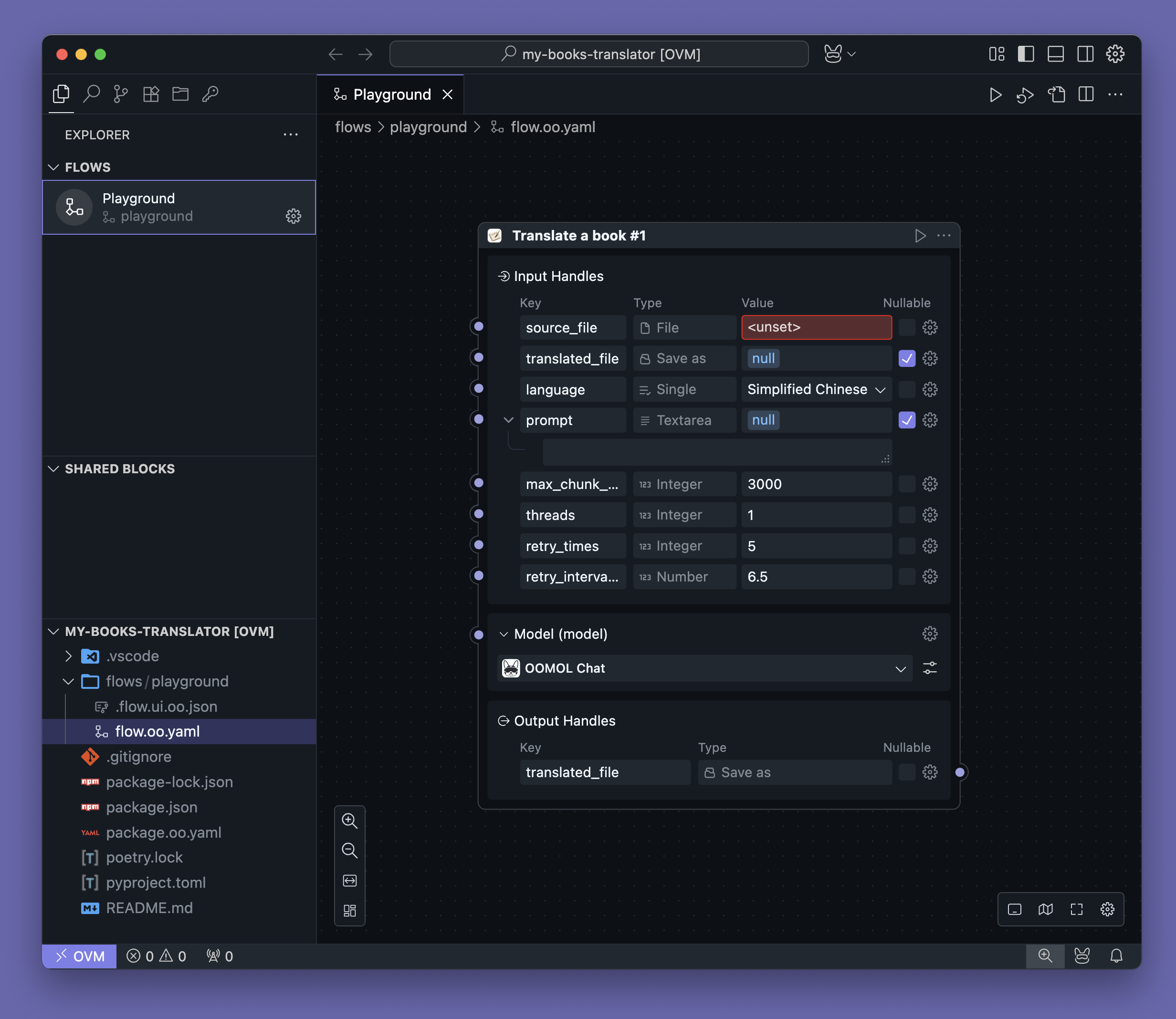 OOMOL Studio recognizes that the real pain point in workflow automation scenarios has long been that users always need some degree of freedom to adjust workflows. OOMOL Studio chooses to implement truly free development experience, as only workflows produced this way can meet various users' needs.