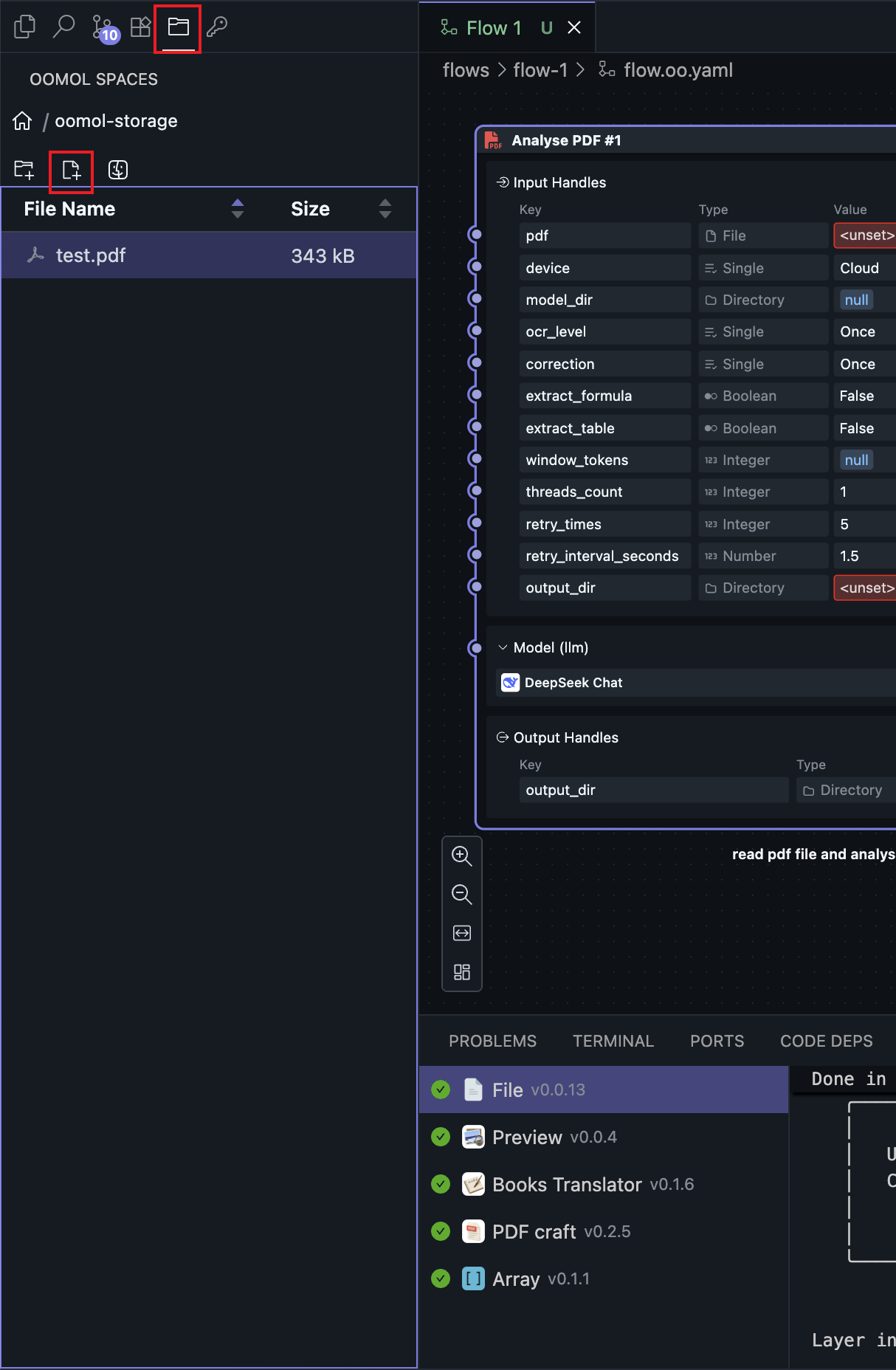 Therefore, OOMOL Studio has the highest degree of freedom and extensibility. Even when built-in applications are insufficient, users can quickly build the nodes they want using code to complete their business. After completing business, they can quickly publish code as platform applications for reuse or sharing.