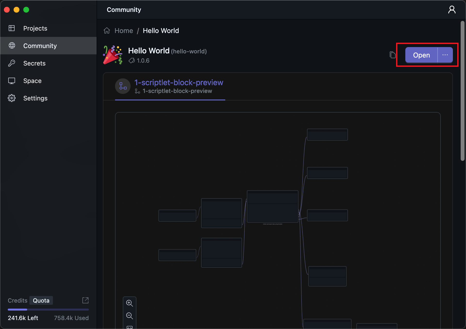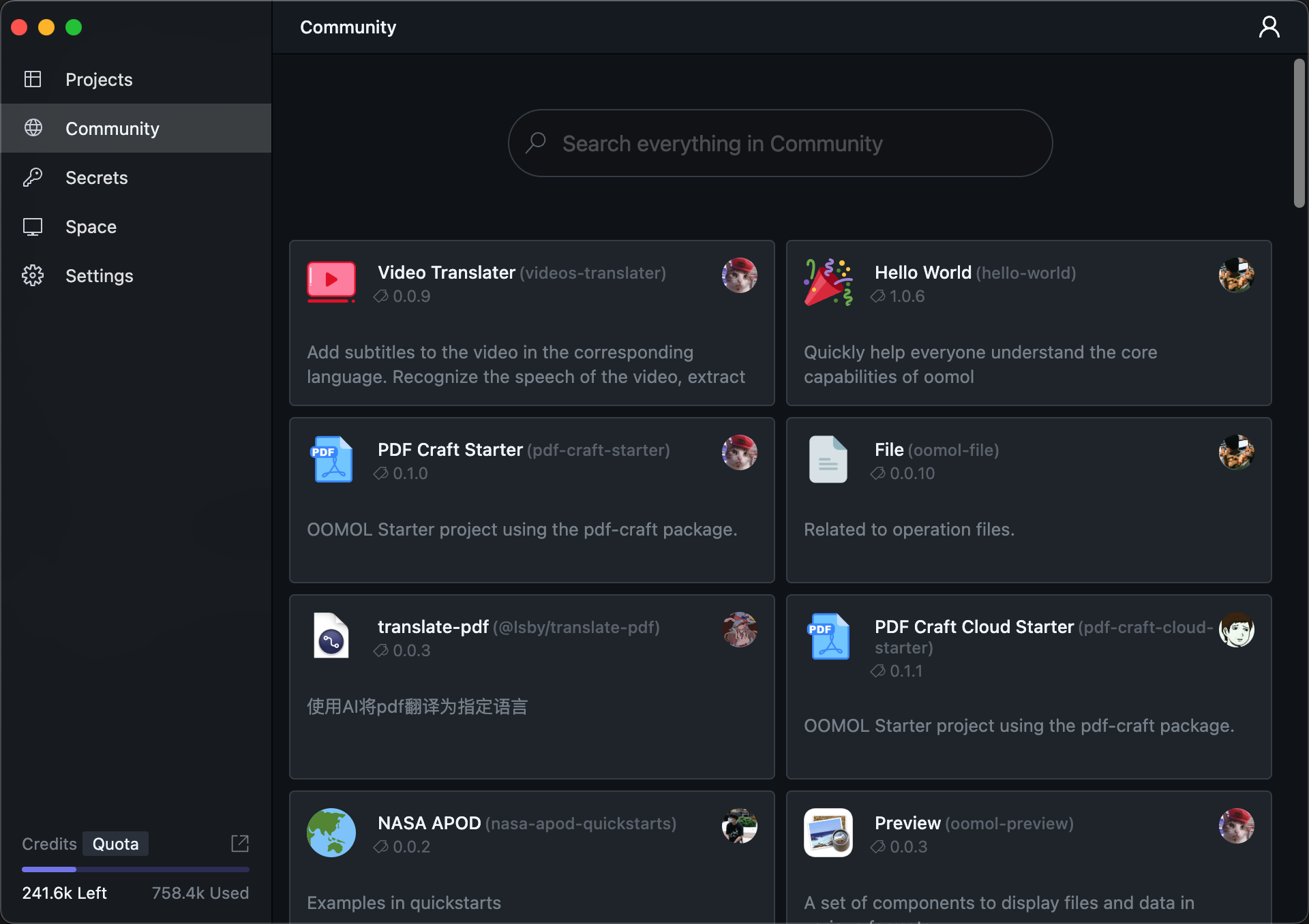 Or you can search for packages that meet your needs on the community page of the homepage. Packages opened this way can directly use the contained Flows:
