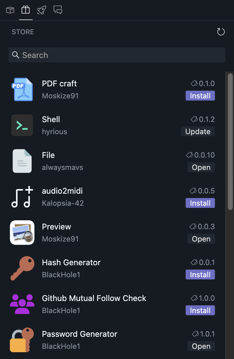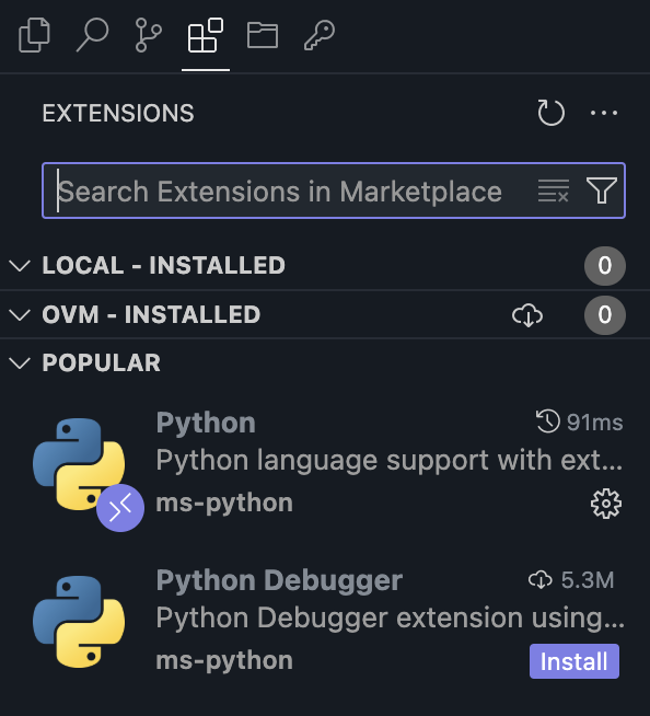 Currently, the extension source used by OOMOL Studio is OpenVSX.