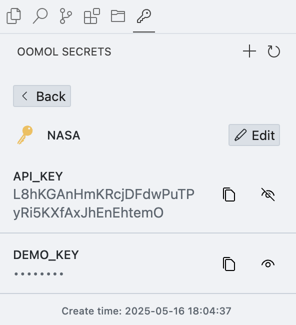 In the left sidebar, OOMOL Studio will show "Explorer" by default. You can also switch to other subviews as needed, such as: Search, Source Control (git), Extensions, OOMOL Storage, OOMOL Secrets.