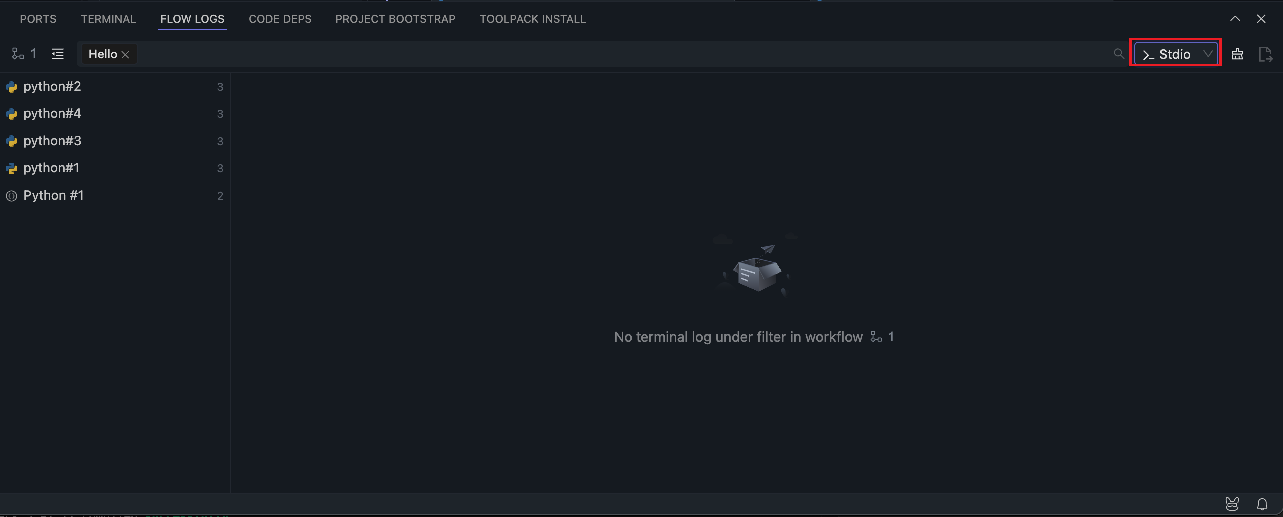 After running the Flow using any method, the log panel at the bottom will display the run logs. Each run will record the latest logs, overwriting the previous logs.